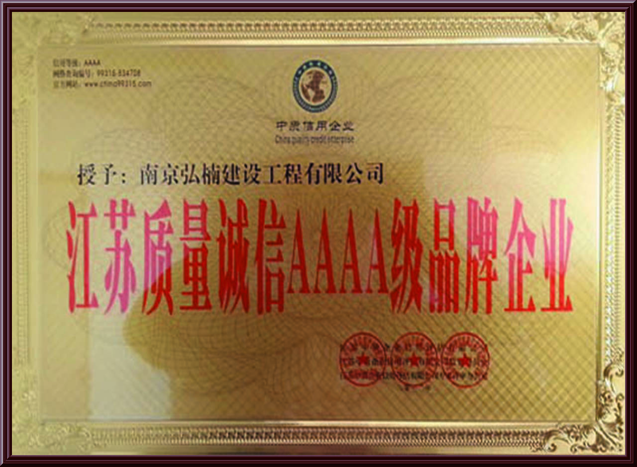 江蘇省質(zhì)量誠信AAA級品牌企業(yè)