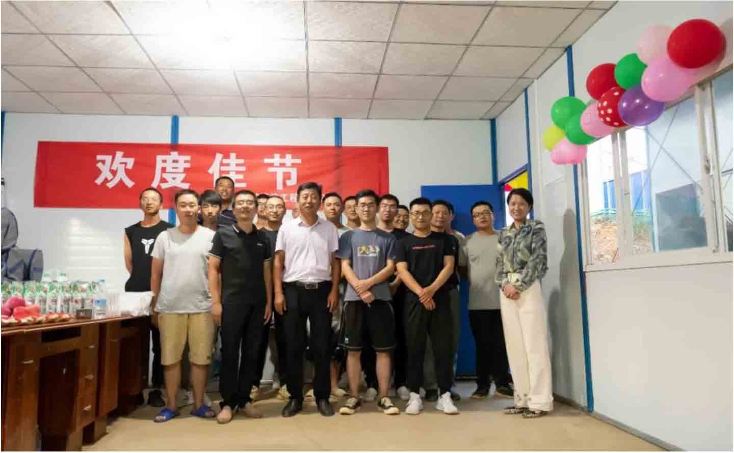 八月十五團圓日,項目工地趕工忙。今年中秋,正值公司南通如東項目建設如火如荼進行之際,所有人都在以挑燈夜戰的狀態完成與甲方的協議,沒有辦法與家人相聚——為讓項目員工感受到家的溫暖,公司人力資源部組織人員前去公司項目部開展如東項目部中秋節現場活動,李總也來到現場為大家送上節日祝福。