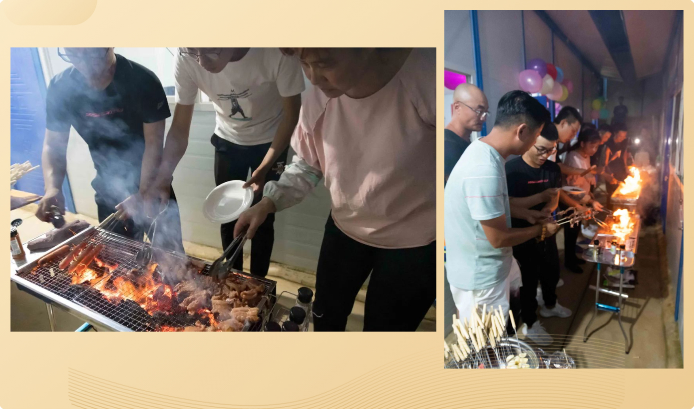 本次活動項目上還準備了豐富的食材,舉辦燒烤活動。大家各顯神通,互相學習,烤制出了屬于自己的專屬味道。此外,由于長期在外,路途遙遠,項目部精心為員工高豪寧舉辦了生日派對,所有人圍坐在一起收獲了一次難忘的項目記憶。