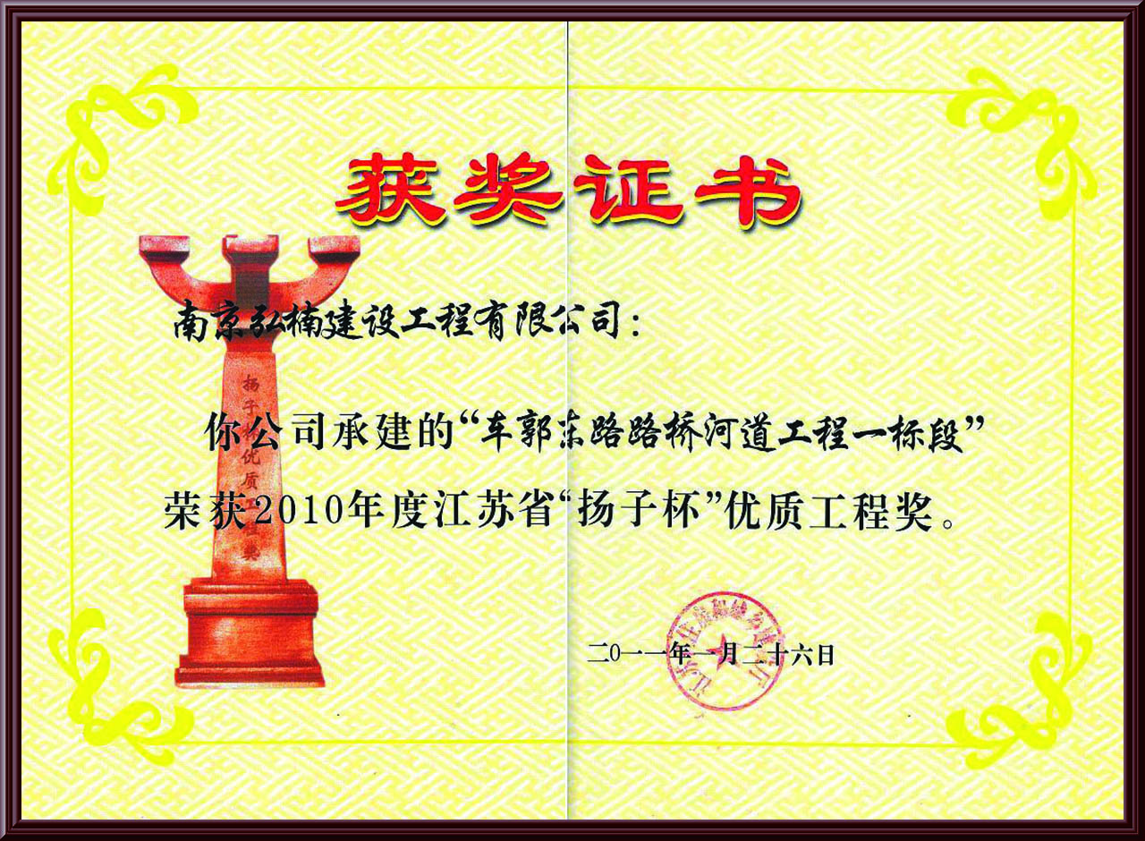 公司承建的瓊姬路獲二〇〇六年度“揚子杯”優質工程獎